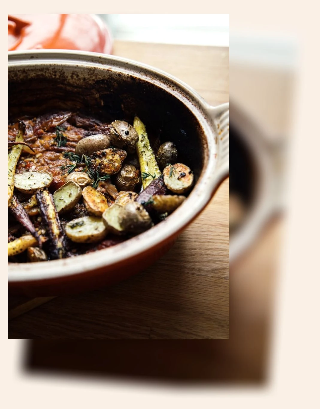 따뜻한 토마토 스튜에 바삭한 감자튀김을 곁들여보세요.